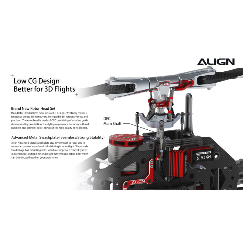 No se escatimó en los componentes electrónicos del kit: La potente fuerza del motor 850MX(490KV/4535) se combina con el controlador de velocidad ESC Brushless RCE-BL200A para una entrega de potencia sin igual; los nuevos servos cíclicos de alto voltaje sin escobillas DS830M con carcasa de aluminio mecanizado CNC, junto con el servo de timón DS835M, no solo exhiben una estética de servo de primera línea, sino que también combinan la función de disipador de calor y el mejor rendimiento en el segmento del mercado.