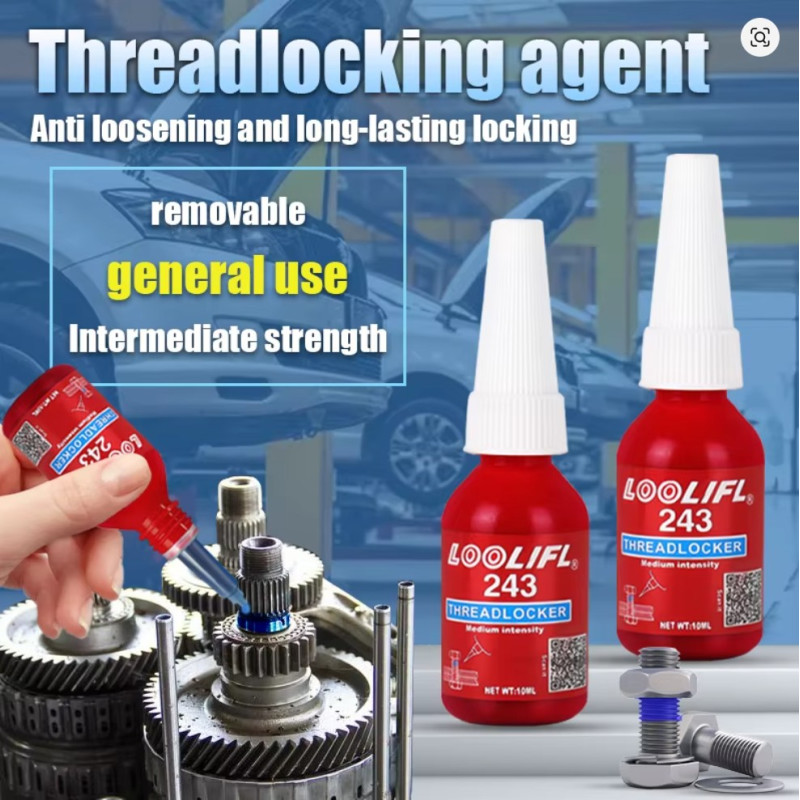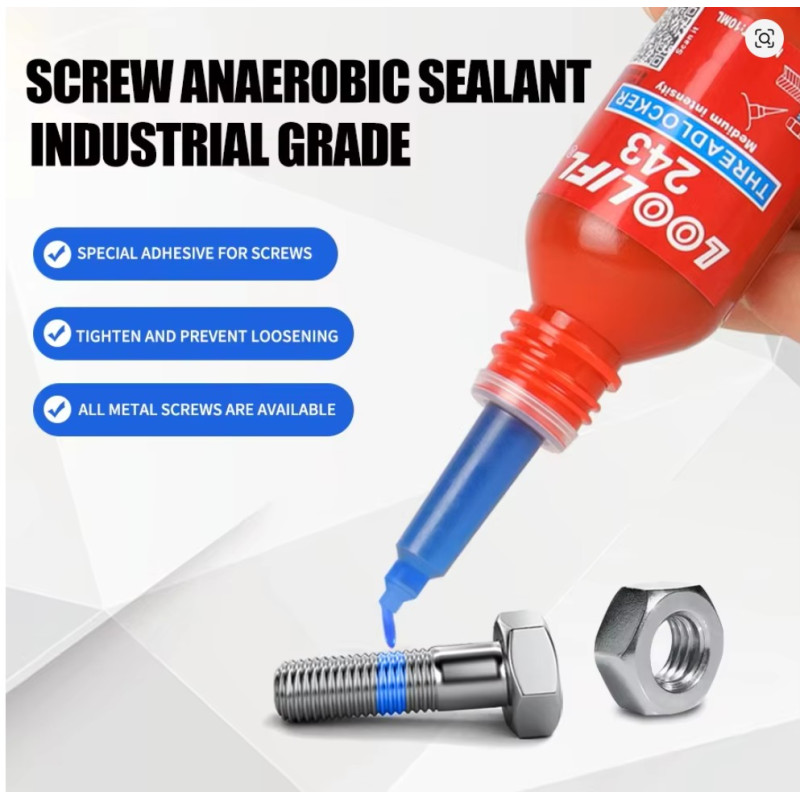 5. Operación simple: simplemente aplique un poco del bloqueador de roscas en la posición de fijación del perno y la tuerca, y luego comenzará a curar en 10 minutos, y sus artículos se pueden usar normalmente después de 24 horas de completamente curado. El diseño de la boquilla máxima con apertura extraíble y sellado a presión hacia abajo puede mantener fácilmente la eficacia a largo plazo del pegamento y permitir una aplicación precisa y controlable.